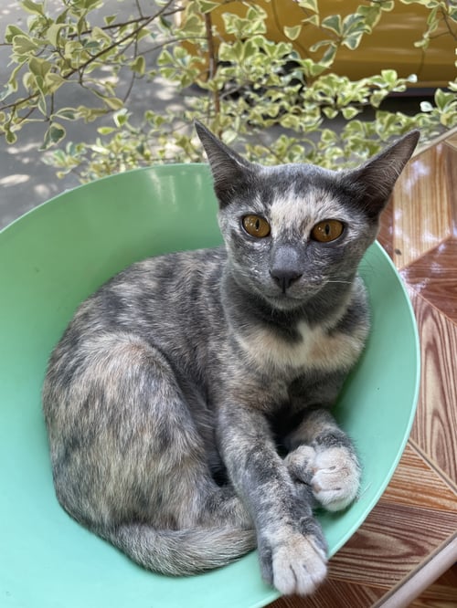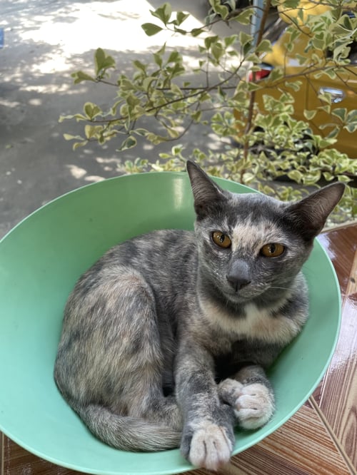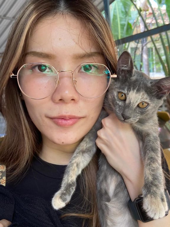 รอยตำหนิ: เจ็บขาหลังด้านขวา เดินกระเพก สามขาเป็นเด็กเรียบร้อย ขี้กลัว และขี้อ้อน เวลาเรียกชื่อหาจะตอบกลับมาตลอดว่า แอ๋ว แอ๋ว แบบเสียงเล็กๆ