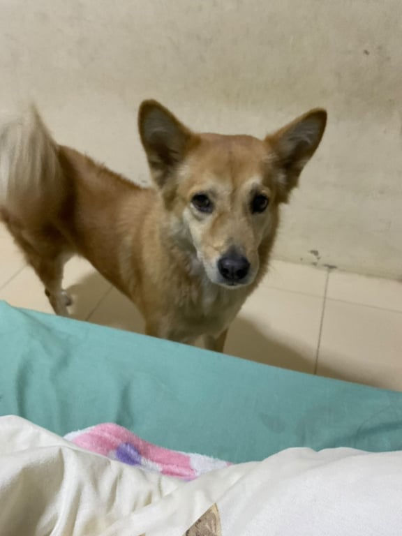 รอยตำหนิ: หลังอาน มีคิ้ว หูตั้งน้องชอบกินข้าวเกรียบกุ้งค่ะ ค่อนข้างกลัวคนแปลกหน้า แต่ถ้าเดินเข้าไปหาช้าๆน้องจะเข้ามาเล่นด้วยค่ะ