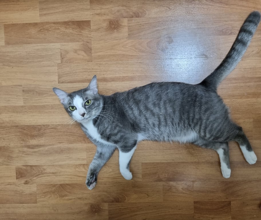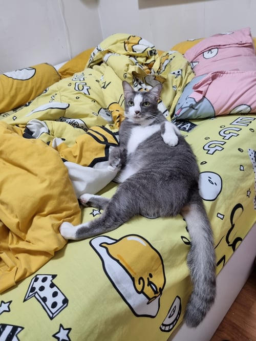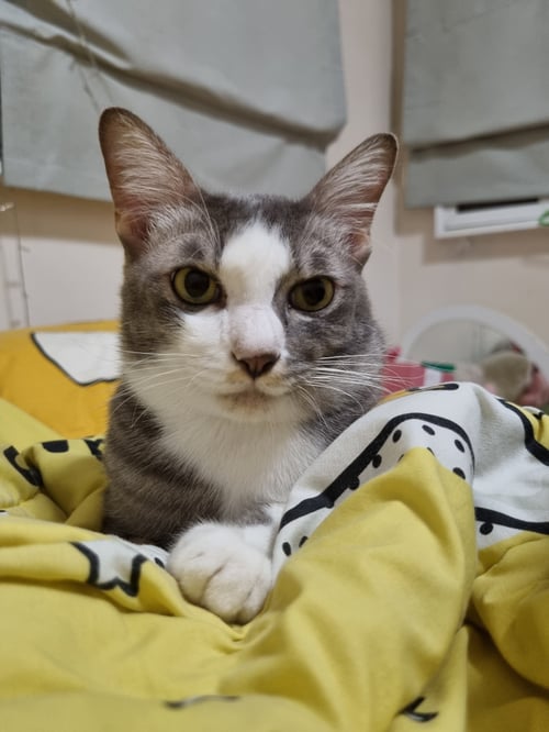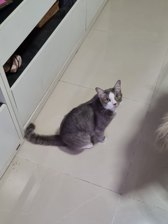 รอยตำหนิ: แก้มสีเทา 1 ข้าง แก้มสีขาว 1 ข้าง ปากสีเหลือง น้องจะมีขนสีขาวแค่ช่วงด้านหน้า ด้านหลังจะเป็นขนสีเทาทั้งหมดมีลายจางๆทั่วตัวน้องขี้กลัวคน ตื่นคนแปลกหน้ามากๆ แต่น้องไม่ทำร้ายนะคะ