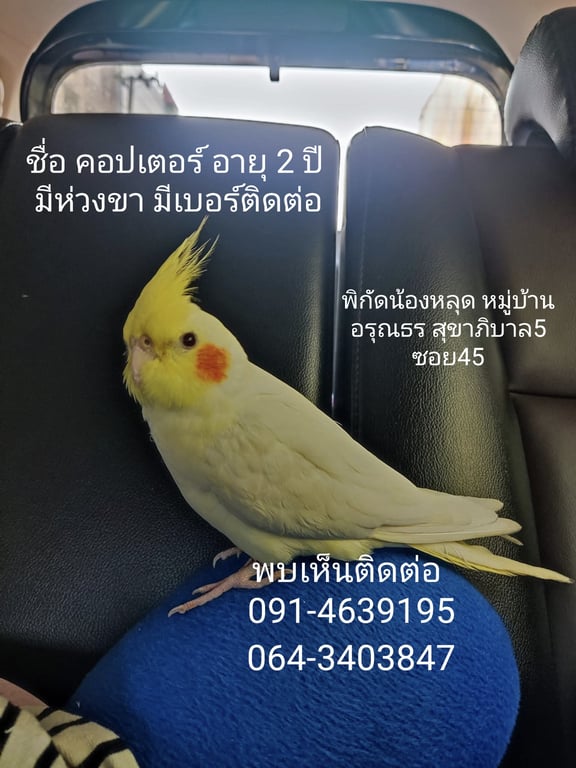 รอยตำหนิ: มีแผลเล็กๆที่หลังนิดหน่อย จะชอบบินเกาะคนชอบเกาะคน บินหาคน
