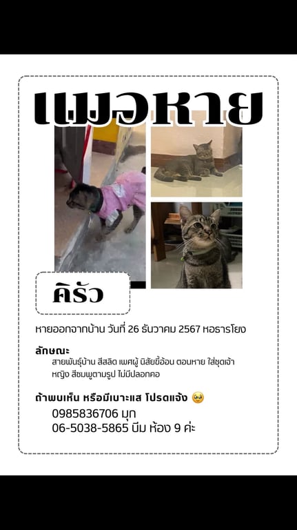 รอยตำหนิ: บนหัวมีรอย แผล ใต้ท้องมีรอยโกนขนขี้อ้อน ติดคน