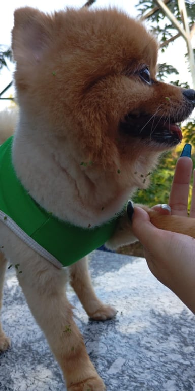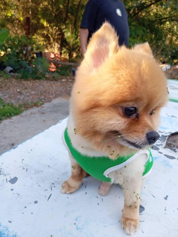 รอยตำหนิ: หูตั่ง ขนตรงหน้าจะฟู ใส่เสื้ออกร้ปสีเขียว ตัวเล็กเหมือนหมาเด็ก
