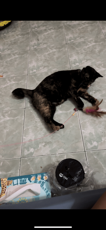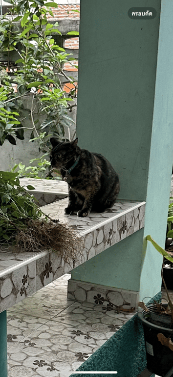 รอยตำหนิ: หางกวักขี้อ้อน ใส่ปลอกคอสีฟ้าชมพู