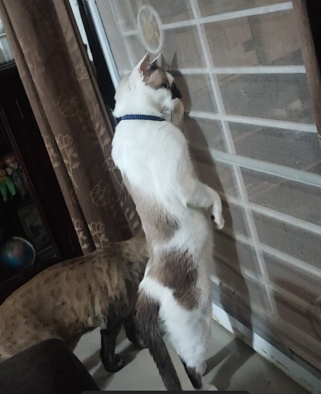 รอยตำหนิ: ตัวใหญ่กว่าแมวไทยปกติน้ำหนัด 7 กิโล กลัวคน มีปลอกคอพร้อมเบอร์โทรติดต่อ