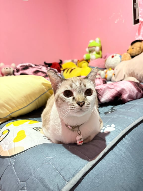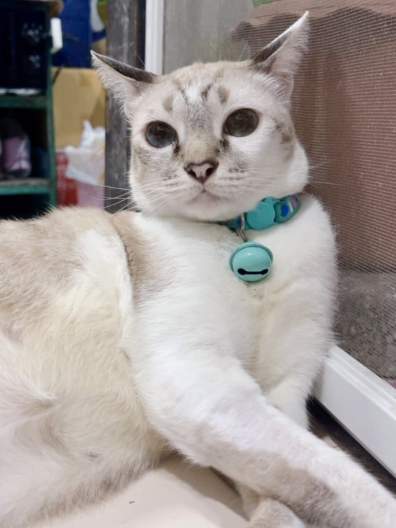 รอยตำหนิ: ตาปลาที่หัว และตา ปลายหางจะออกสีดำน้องใส่ปลอกคอเรืองแสง จี้คิตตี้