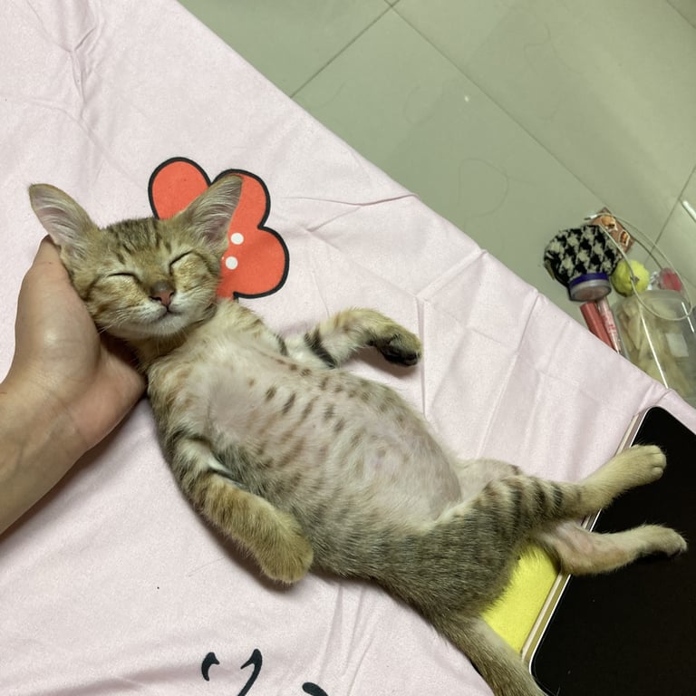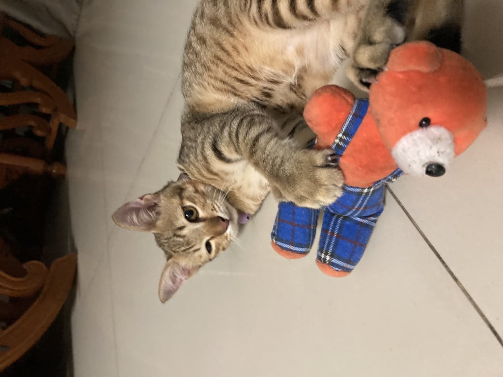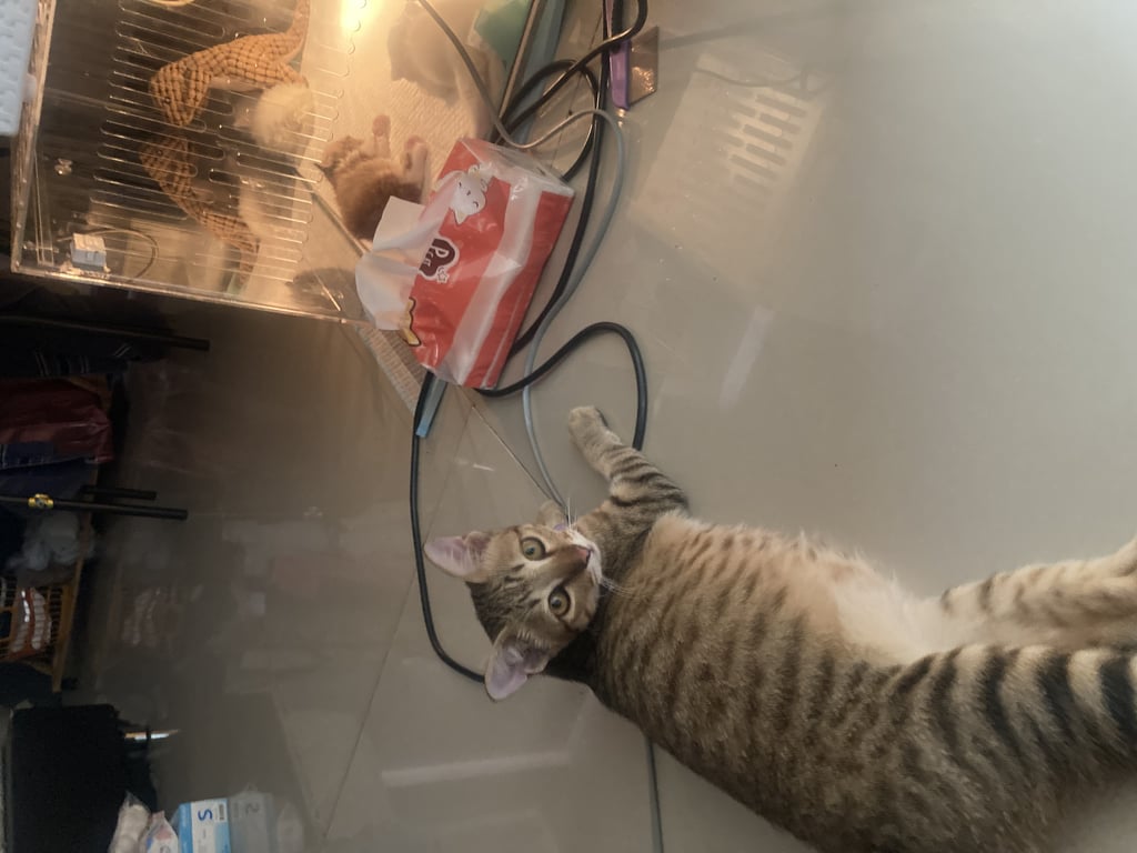 รอยตำหนิ: ปลายหางหัก ใส่สร้อยคอ มีปลอกคอสีม่วง