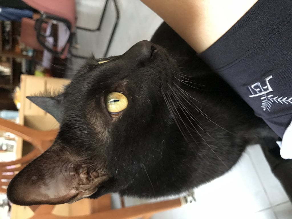 รอยตำหนิ: ดำทั้งตัวอายุประมาณ 7 ปี นิสัยเชื่อง ไม่มีปลอกคอ