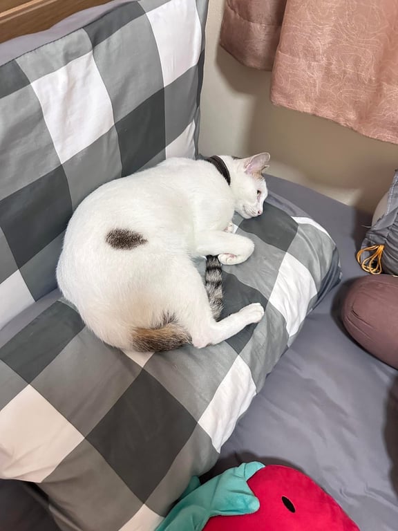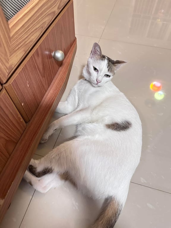 รอยตำหนิ: หางลาย ข้างท้อง2ข้างมีลายเล็กๆน้องขี้กลัว ขี้ระแวง ขี้ตกใจ