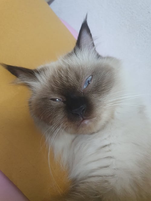 รอยตำหนิ: ตาสีฟ้า ดูบางทีเหมือนตาเหล่ขี้กลัว ขี้ตกใจ กลัวคนแปลกหน้า เก็บตัว ชอบตัวตัวคนเดียว รักสันโดษ ชอบหามุมเงียบๆนอนคนเดียว ไม่วุ่นวายกับใคร ไม่มีปากมีเสียง