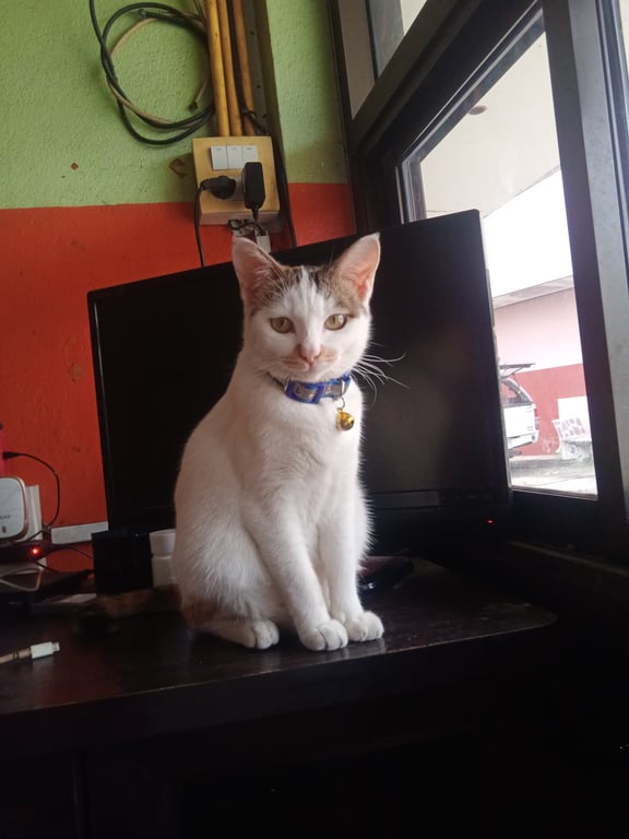 รอยตำหนิ: ใส่ปลอกคอสีฟ้ากระดิ่งรอบคอน้องกลัวคนมาก เรียกชื่อจะวิ่งมาหา เข้ากับคนได้ยากถ้าไม่ใช่คนที่คุ้นเคย