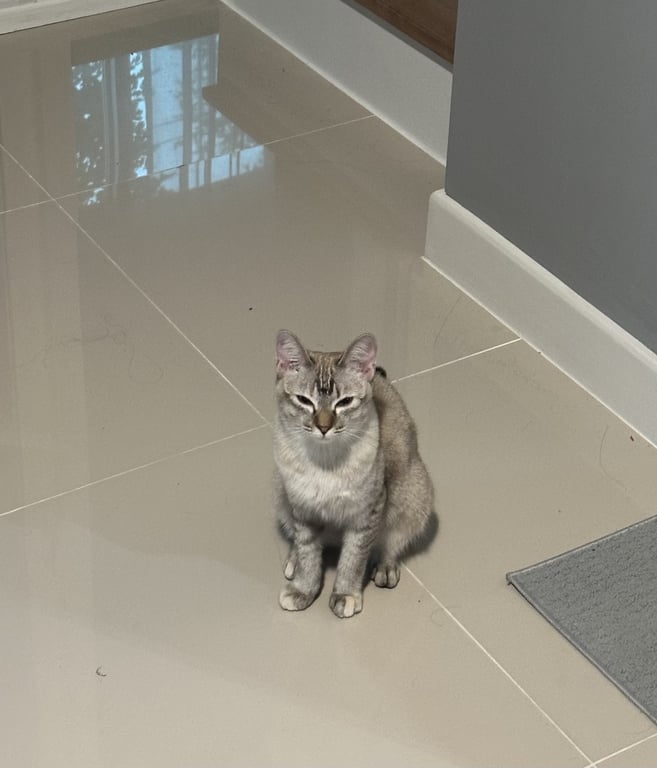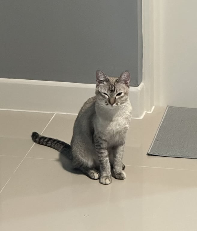 รอยตำหนิ: ตาเจ็บอายุประมาณ 5-6 เดือน นิสัยขี้กลัว ชอบวิ่งหนี
