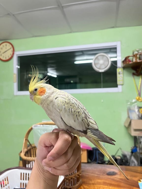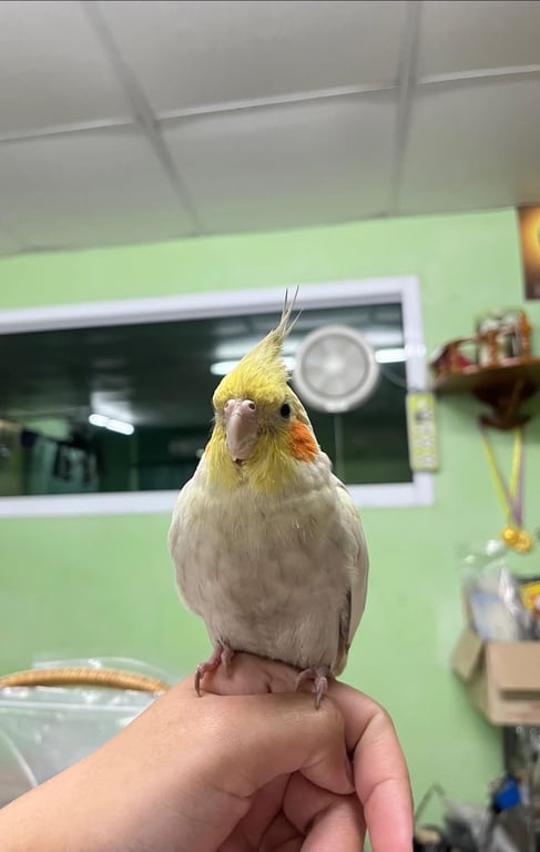 รอยตำหนิ: สีเทาเหลืองดำ แก้มแดง ใส่ห่วงขามีชื่อน้องและเบอร์โทรเจ้าของติดคนชอบบินเกาะหัว เกาะไหล่ ตกใจง่าย หงุดหงิดง่าย หากเจอให้จับน้องไว้เพราะขี้ตกใจ