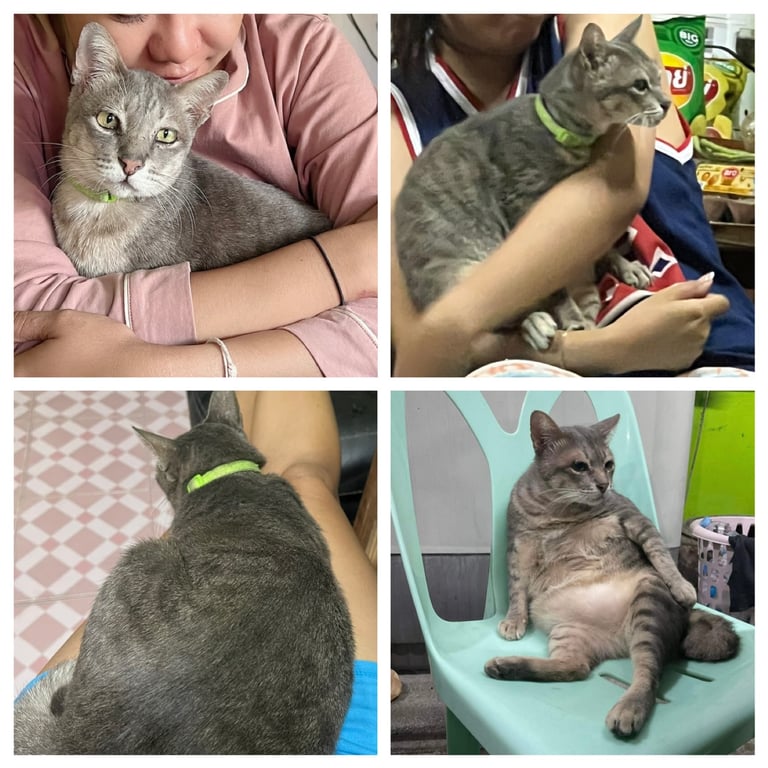 รอยตำหนิ: หลายสลิด หางม้วน มีปลอกคอสีเขียวเชื่อง ขี้กลัวเสียงดัง กลัวแมวตีกันกัดกัน กลัว หมากัดกัน กลัวเสียงรถดังๆ