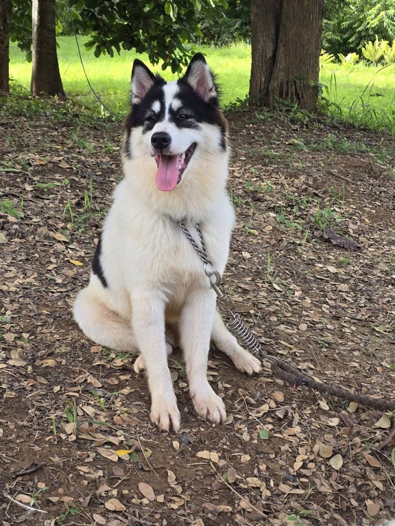 รอยตำหนิ: ด้านข้างลำตัวเป็นรูปหัวใจสีดำนิสัยขี้กลัวเมื่ออยู่ข้างนอก ไม่ดุ แต่น้องฃอาจจะระแวงและเห่า ขี้เล่น ชอบคาบของ