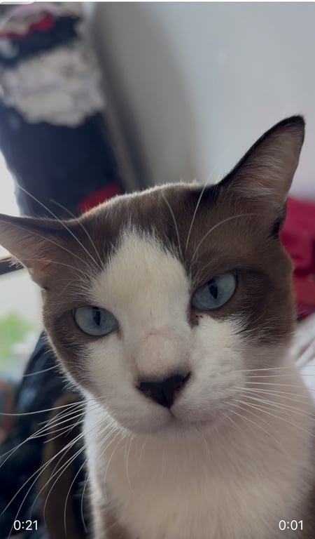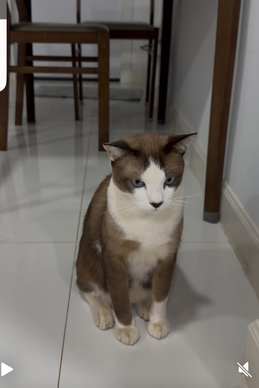 รอยตำหนิ: ตัวสีน้ำตาล หน้าสีขาวเป็นแมวขี้กลัว