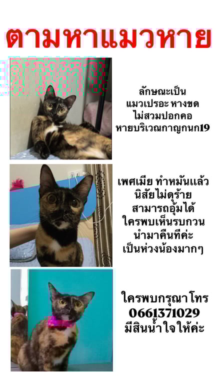 รอยตำหนิ: หางขด ตรงอกมีสีขาว ไม่มีปอกคอนิสับขี้อ้อน กลัวคน ไม่ข่วน ไม่กัด อุ้มได้