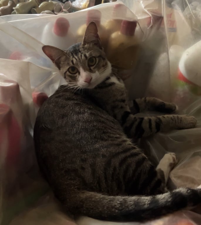 รอยตำหนิ: ปลอกคอสีเหลือง ไม่มีกระดิ่ง-หายวันที่ 1/2/68 เวลาประมาณ 10 โมงเช้า -ตัวน้องแมวลายสลิด -ตัวน้องกลางๆ ไม่โตมาก