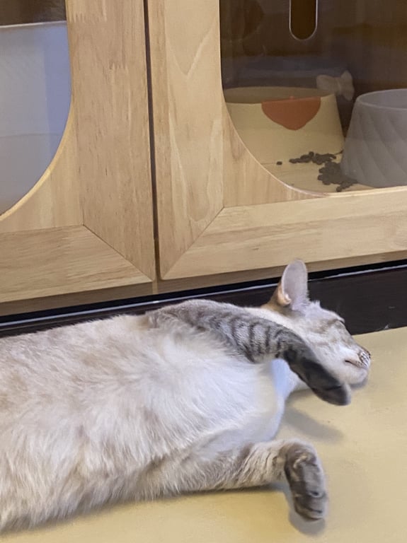 รอยตำหนิ: ตาฟ้า ท้องเป็นลายคล้ายๆปลานิล ค่อนข้างอ้วนหลุดออกไปช่วงน้องฮีท ไม่แน่ใจหลุดไปช่วงไหน