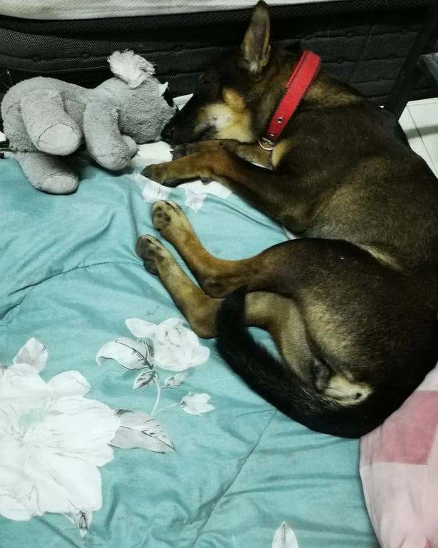 รอยตำหนิ: ปลอกคอสีแดงมรกระดิ่ง เดินเหมือนม้า มีรอยแผลเป็นตรงเอวขวา ขนจะแหว่งเป็นจุดเดินเหมือนม้า น้องอาจมีอาการตาซ้ายย่นลงมาเห็นตาเนื้อตาแดงๆ เพราะขาดยา ตอนหายไปพร้อมปลอกคอสีแดงมีกระดิ่ง น้องไม่ค่อยคุ้นคนและขี้กลัว