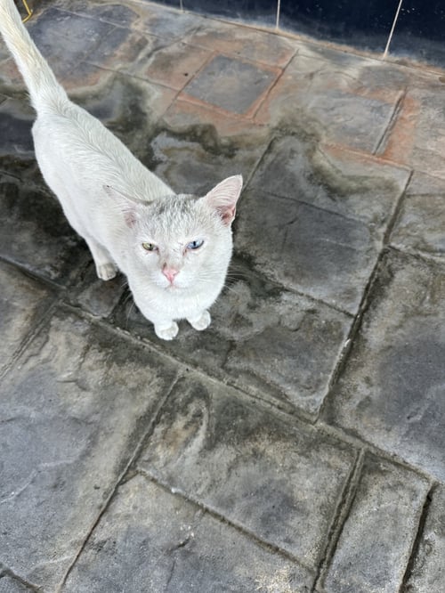 รอยตำหนิ: เหนือคิ้วมีแต้มสีดำ ตาสองสี