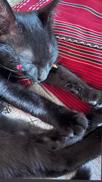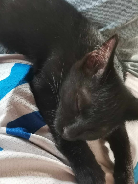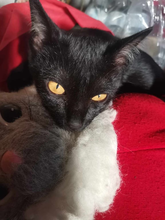 รอยตำหนิ: มีสีขาวแค่ตรงคอ หน้ากลม ตาโตขี้เล่น เล่นเเรง จับค่อนข้างยาก ต้องเอาขนมล่อ ขี้อ้อน