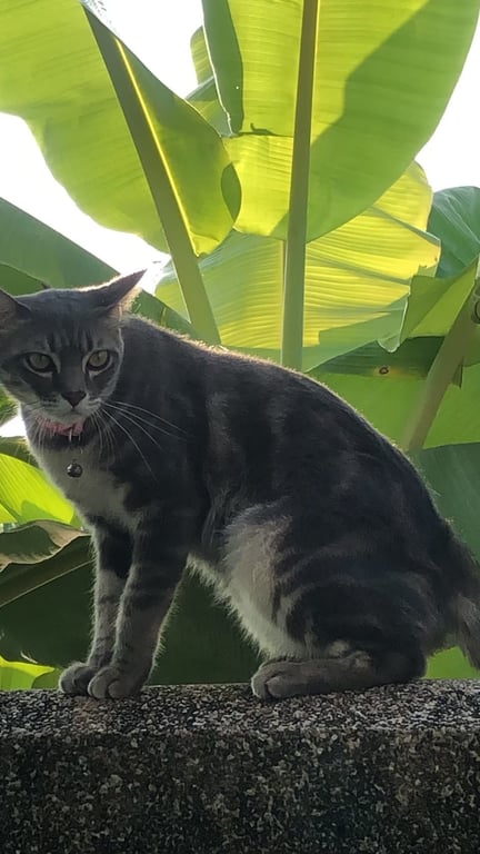 รอยตำหนิ: หนวดขาวยาวๆ ตัวยาว หางยาว ตาเหลืองๆ มีปลอดคอแต่ไม่แน่ใจว่าใส่สีอะไรออกไปค่ะ เพราะเปลี่ยนบ่อย1-2ปี ขี้ตกใจ อะไรปลิวก็ตกใจ ชอบนอนกลางวัน กลัวเสียงรถหรือเสียงดัง ซน ชอบวิ่งไล่นก จับหนู