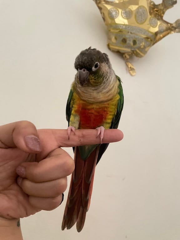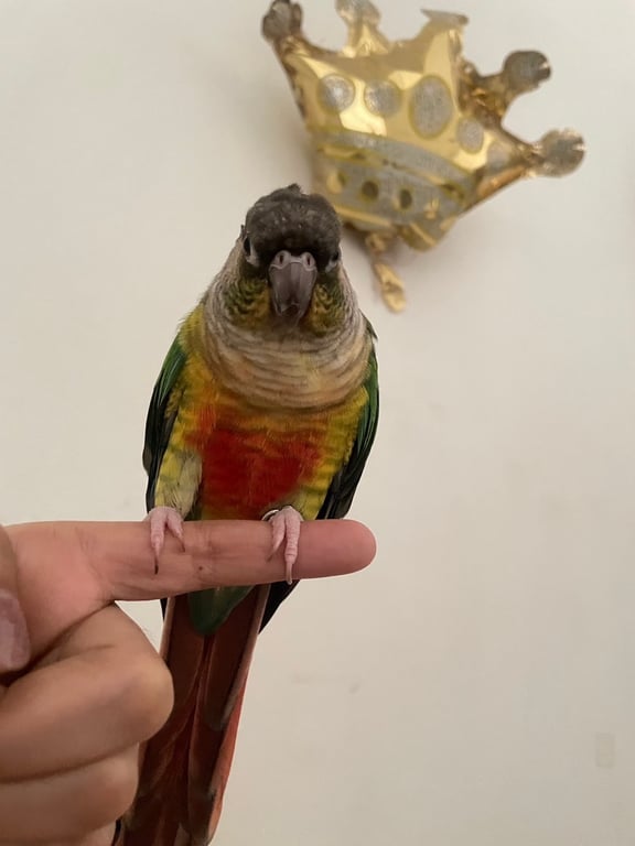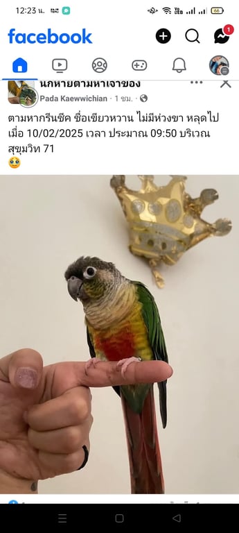 รอยตำหนิ: ขนหัวแหวงนิดหน่อยสีเขียวแก้มเขียว ท้องสีส้มแดง ห่วงขาวงใหญ่