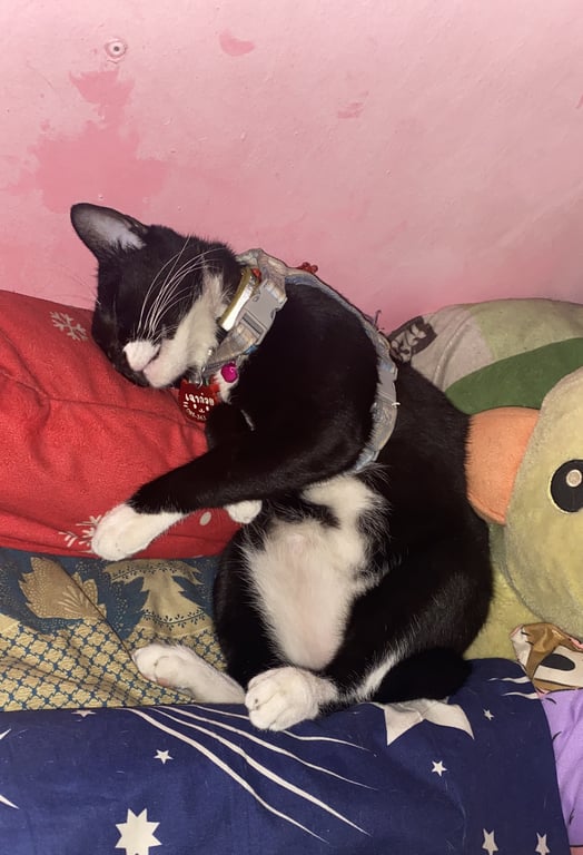 รอยตำหนิ: หางหอด มีถุงเท้าสีขาว4ข้างน้องขี้กลัวมาก