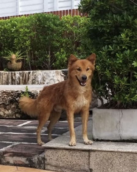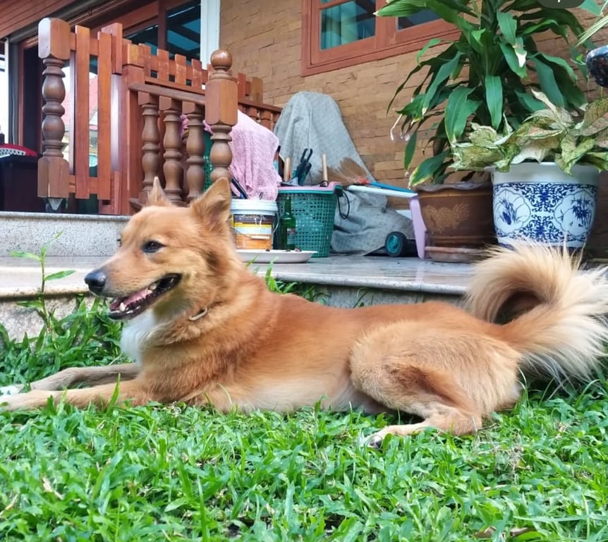 รอยตำหนิ: ตัวผอม ขนหางฟูไม่ดุร้าย เชื่องคน มีโซ่ที่คอสีขาว