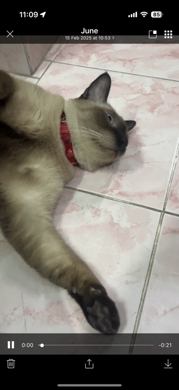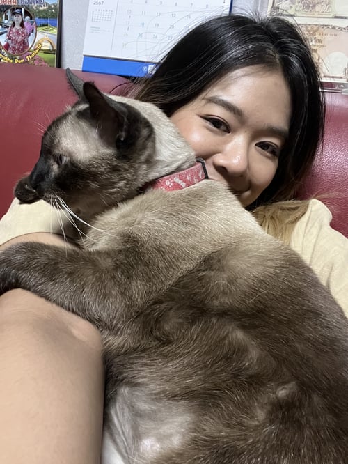 รอยตำหนิ: ตัวใหญ่ ทำหมันแล้วไม่ชอบคนแปลกหน้า พลังเยอะ หลังทำหมันน้ำหนักขึ้น ไม่เคยลับเล็บ ตัวอ้วน มีปลอกคอ สีแดง/เขียว