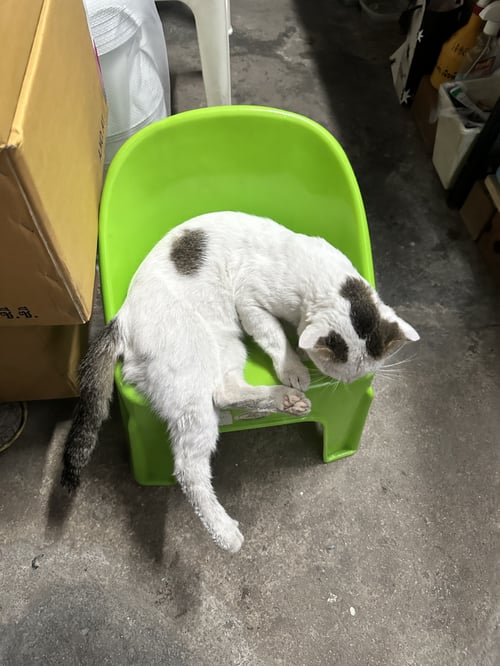 รอยตำหนิ: ตอนหายไปหางตาข้างขวาเป็นรอยแดงชอบเดินชนถูไถ่ขา ทิ้งตัวลงพื้นแรง ขี้อ้อนใจดี เวลาหิวขี้โวยวายถ้ากินไม่อิ่มจะร้องแล้วกวน