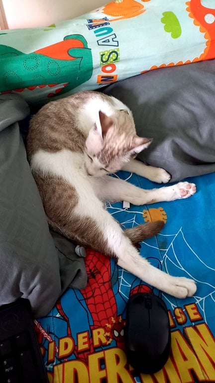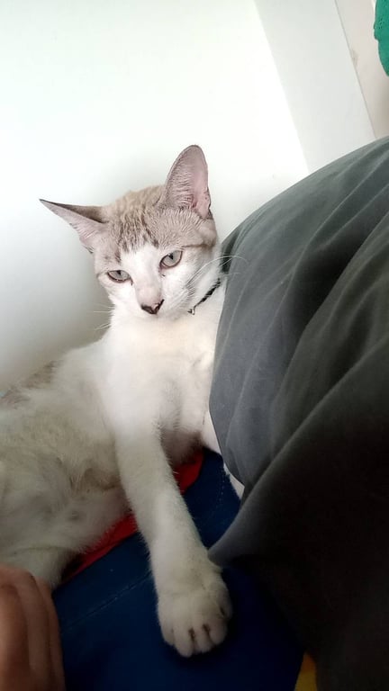 รอยตำหนิ: มีจุดสีดำ ที่จมูก และมีปลอกคอ สีฟ้าขี้อ้อน