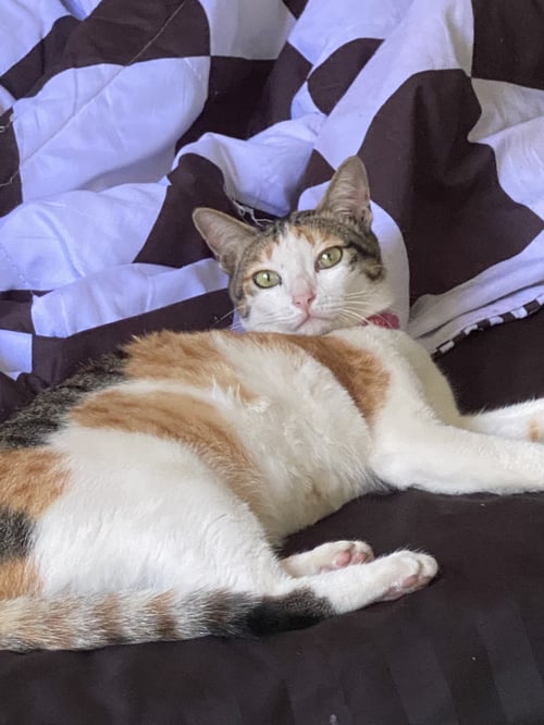 รอยตำหนิ: สีแผลจุดเล็กบนหน้าข้างตาซ้าย , หลังขาซ้ายมีลายสีดำขี้กลัว จำชื่อตัวเองได้
