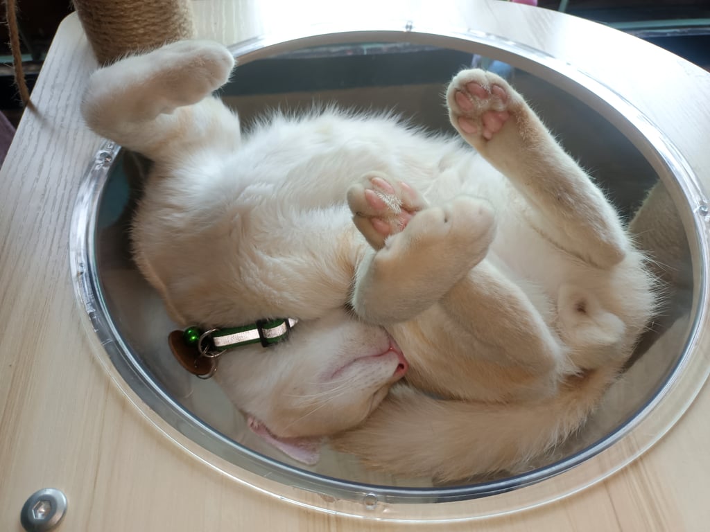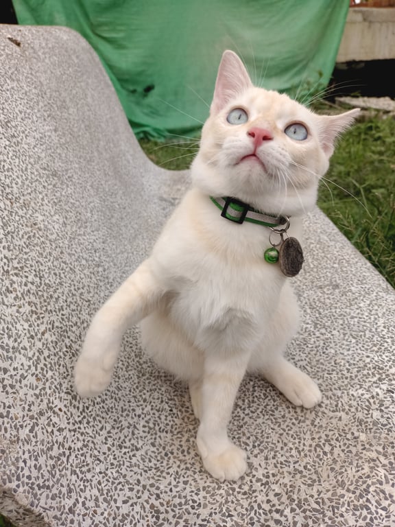 รอยตำหนิ: เป็นขาวมณีผสมลายส้มตาสีฟ้าเป็นพันธุ์ผสมเปอร์เซียน้องมีนิสัยไม่คุ้นคนไม่ชอบคนแปลกหน้าตื่นคนง่ายไส่ชอบเสียงดังปกติจะวิ่งเล่นอยู่บริเวณในรั้วบ้านมีหนีซนออกไปข้างนอกรั้วบ้างแต่ไปไม่ไกลกลับมาเองทุกวันไม่เคยหายไปไหน บริเวณบ้านเป็นพื้นที่เปิดกว้าง ติดกับรร.บ้านท่าเรือมีบริเวณวิ่งเล่นรอบบ้านกว้างอยู่แล้ว ปกติน้องจะวิ่งเล่นนอนเล่นอยู่แต่ที่สวนในรั้วบ้านวันที่หายไม่ได้ใส่ปลอกคอ