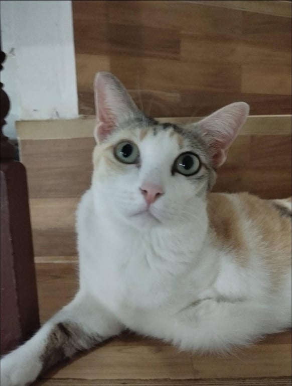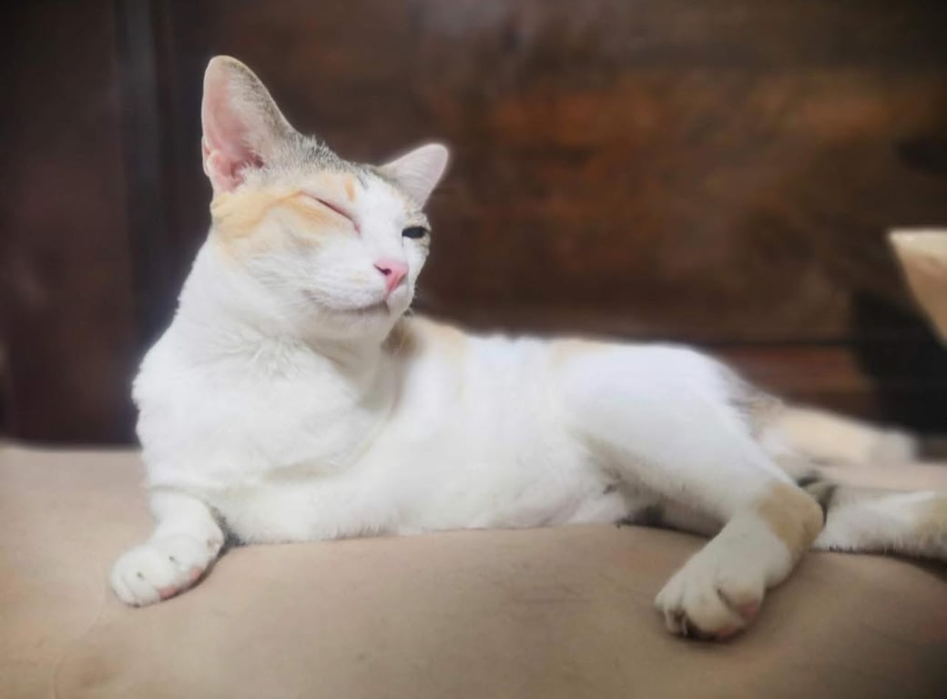 รอยตำหนิ: ขาซ้ายด้านหน้าขาด เหลือแค่ 3 ขาเรียกชื่อ “ชานม” แล้วน้องจะหัน ขี้กลัว เชื่อง อ้อน ชอบกินขนมแมวเลีย