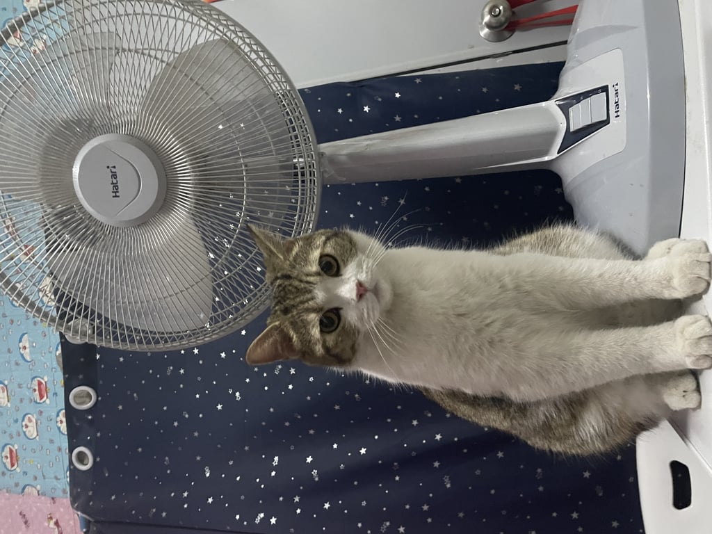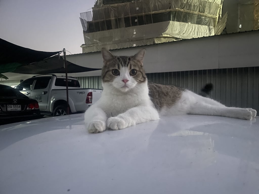 รอยตำหนิ: หางตรงยาง ขาหลังซ้ายมีลายปาน จมูกสีชมพูนิสัย ไม่กลัวคนชอบคน ขี้ร้อน ชอบกินอาหารเปียก