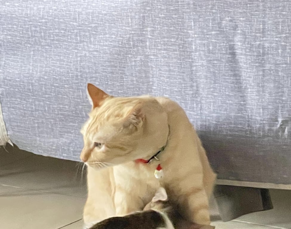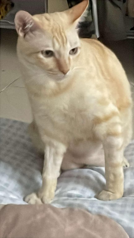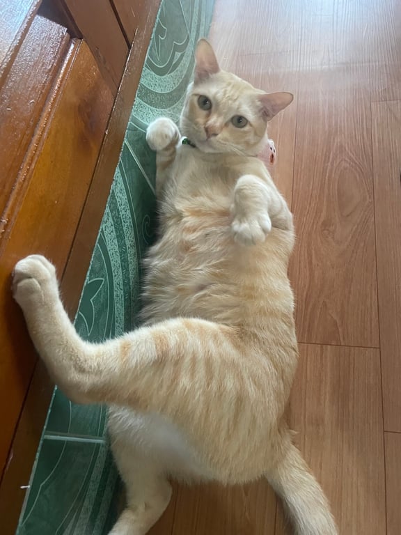 รอยตำหนิ: ปลายหางคดนิดเดียว ปลอกคอซานต้าตามแบบในรูป สีออกครีมๆกลัวคน แต่ไม่กลัวแมว