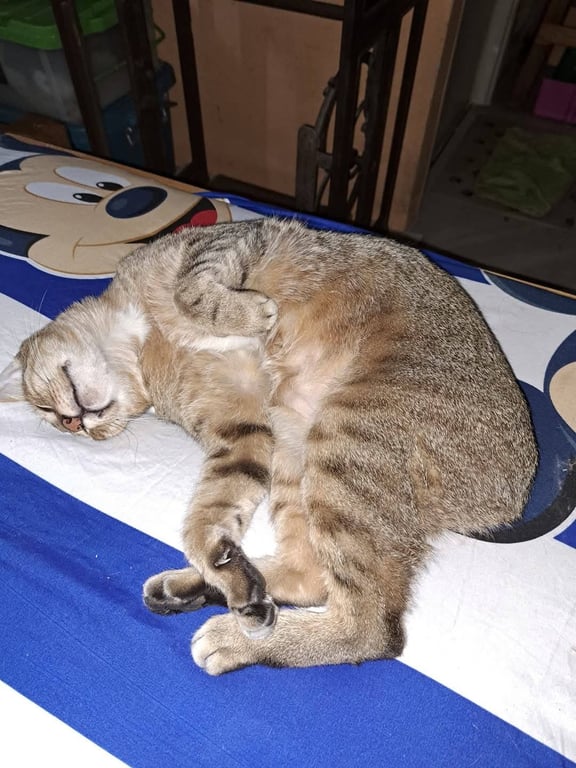 รอยตำหนิ: ไม่มีหาง สีลายน้ำตาลอ่อน มีผ้าพันแผลสีแดงที่เท้าหน้าด้านขวาอายุประมาน10ปี รูปร่างผอม ขี้ตกใจ หางกุด ไม่มีหาง ระหว่างช่วงที่หาย มีผ้าพันแผลสีแดงที่เท้าหน้าด้านขวา