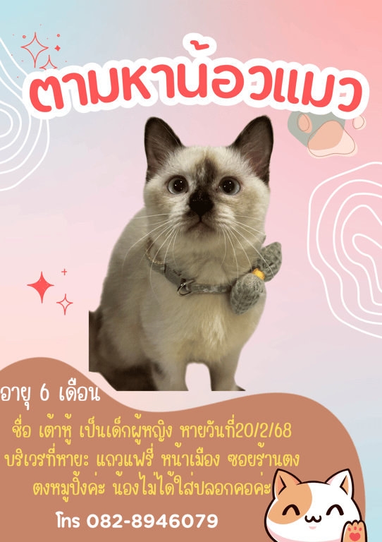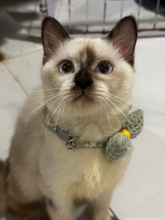 รอยตำหนิ: ตรงหน้ามีจุดสีขาว ตาสีฟ้า