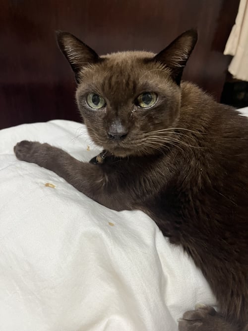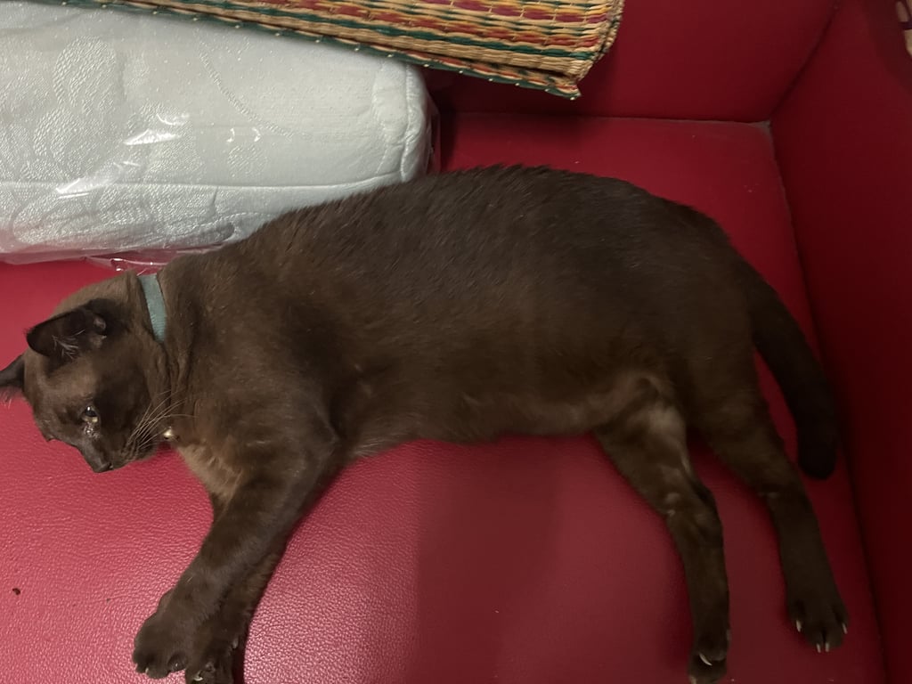 รอยตำหนิ: ปลอกคอสีฟ้าสีน้ำตาล น้ำหนักประมาณ5กิโล ใส่ปลอกคอสีฟ้า หายใจแรง มีน้ำมูก จามบ่อยๆ
