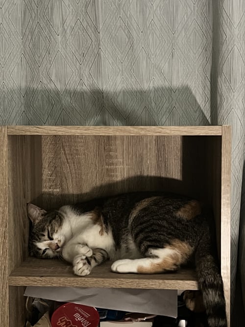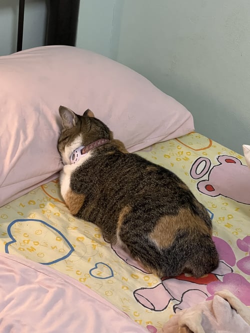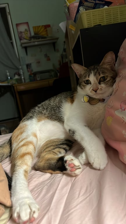 รอยตำหนิ: มีหางยาวลายดำตัดเทาสลิดผสมสามสี หูด้านหลังเป็นสีส้มตัดกับสีดำนิสัยชอบผชมากกว่าผญ น่ารักกับทุกคนยกเว้นหมอ ฉลาดมาก ขอมือได้ ขี้เล่น ชอบพูด พูดรู้เรื่อง รักในการกิน ตามีสีเหลือง หน้าท้องขาว หนัก4โลกว่าได้