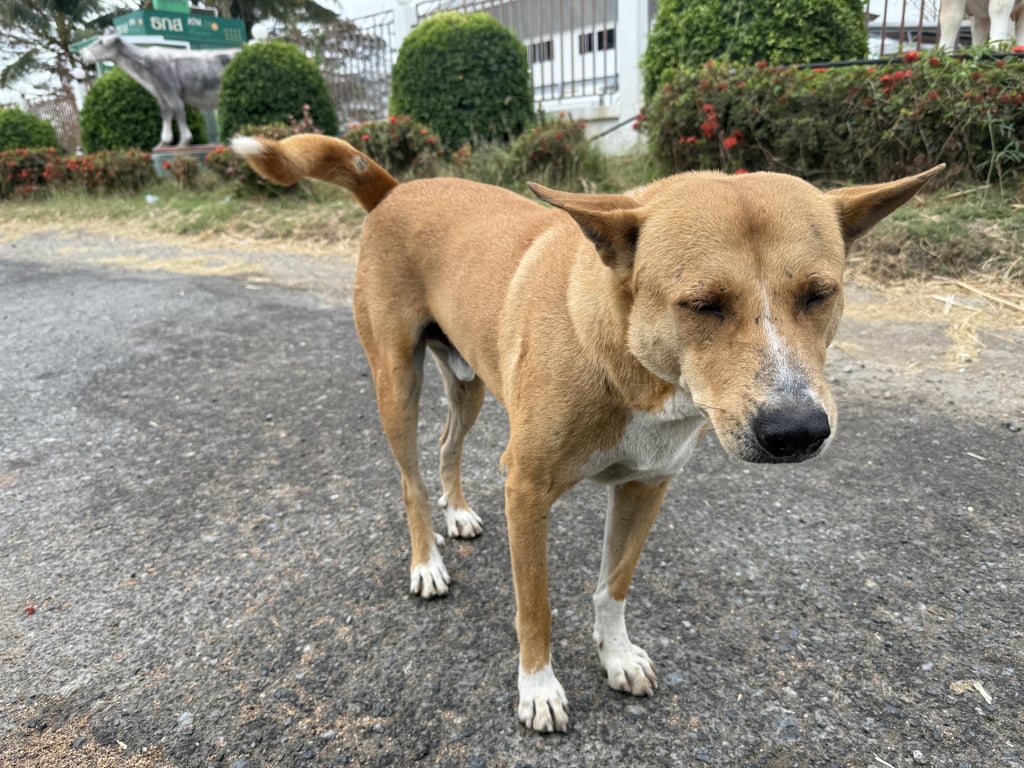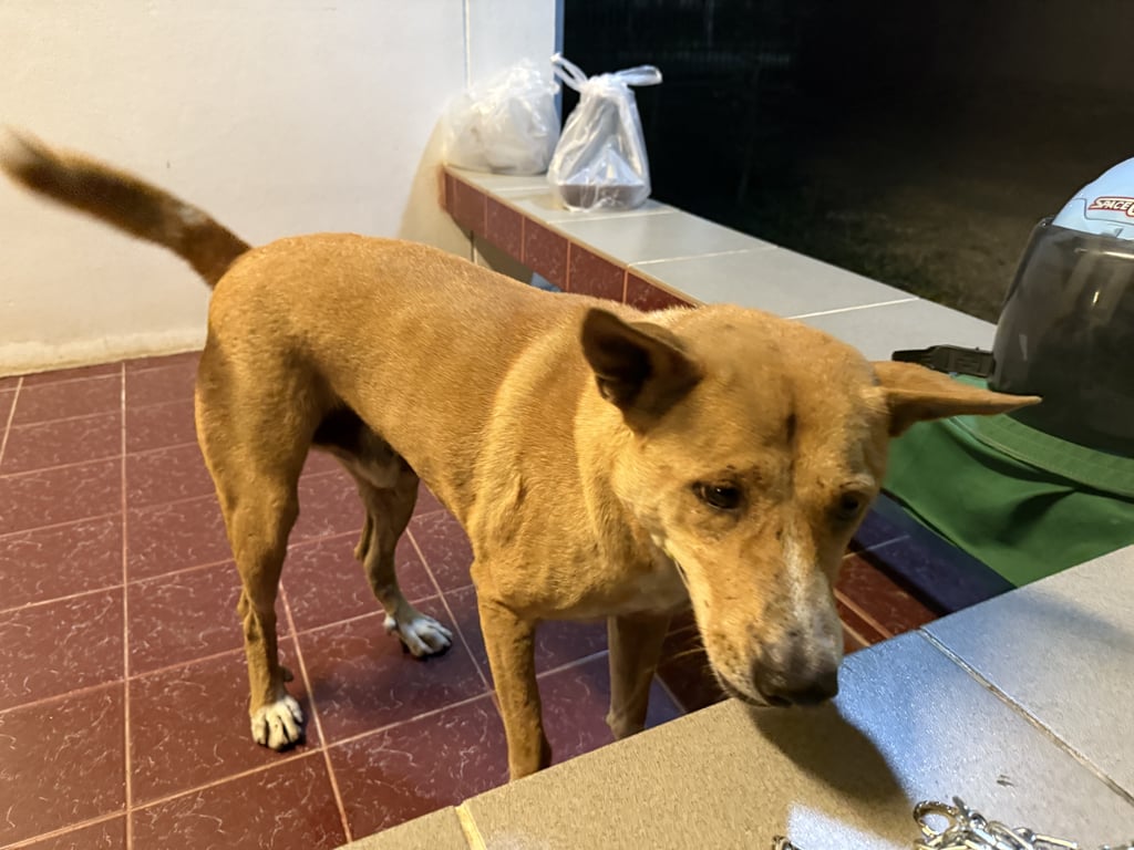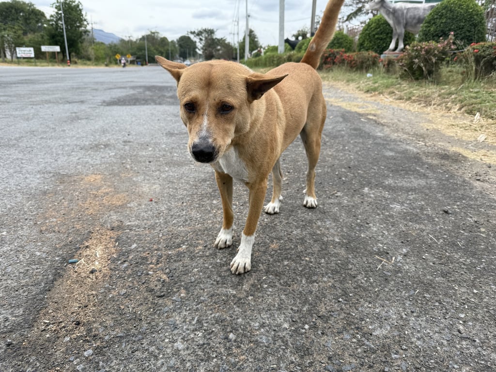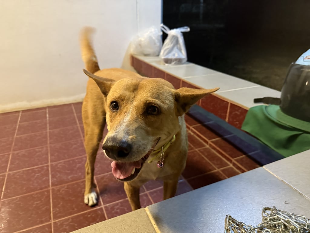รอยตำหนิ: หางมีวงขนหาย หลังคอมีสีขาว ใส่ปลอกคอสีเหลืองสะท้อนแสง มีกระดิ่งเชื่อง เข้ากับคนง่าย