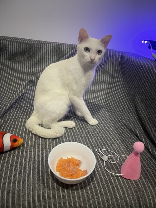 รอยตำหนิ: มีสีครีมตรงคอ / หางขดปกติไม่กลัวคน ตอนหายเหมือนจะติดสัด