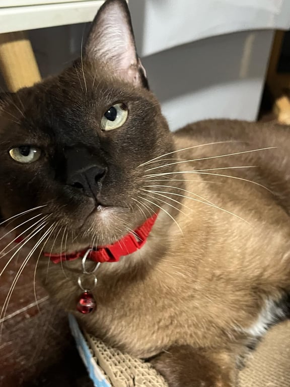 รอยตำหนิ: หางยาวกวัก ตาซ้ายมีจุดในตานิสัยขี้กลัว กลัวรถ กลัวคน กลัวเสียงดัง