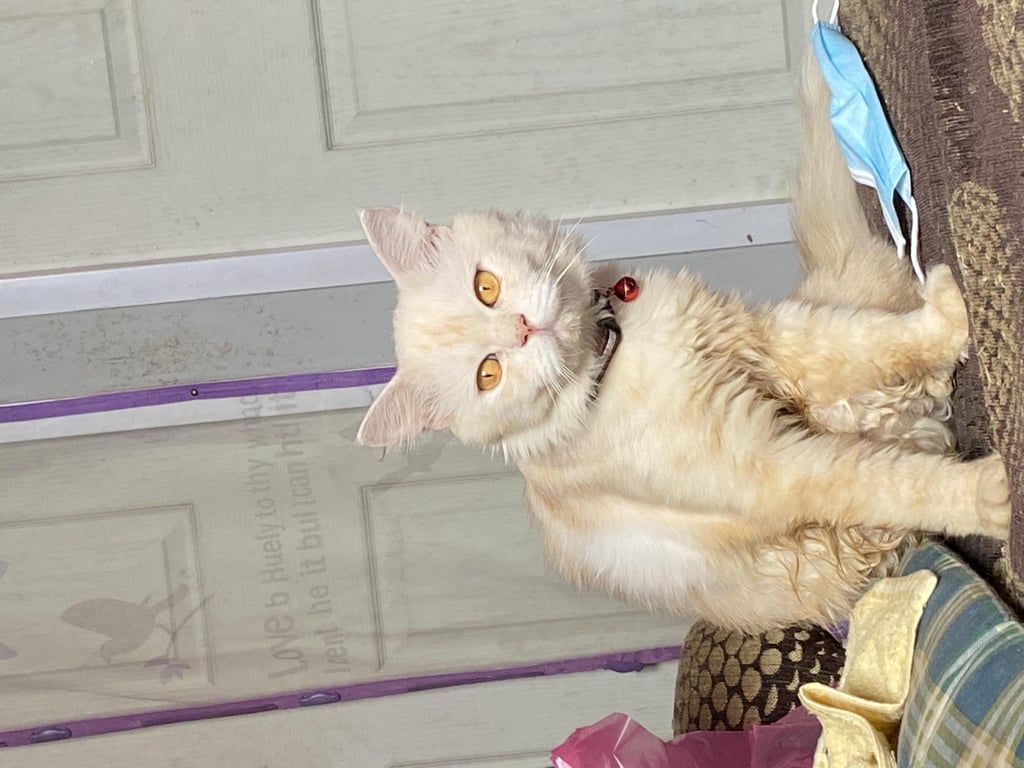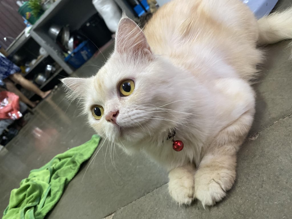 รอยตำหนิ: ตาสีเหลือง แต้มจุดดำบริเวณจมูก นน.ประมาณ4กก. ขนยาวสีขาวครีม สวมปลอกคอสีแดงมีกระดิ่งพบเจอแจ้งได้ที่ 0982832711 หายเมื่อวันที่ 9/9/2565 บริเวณเลยสนามหญ้า7ริ้ว ถนนเลียบคลองวัดด่านเงิน อ.แปลงยาว