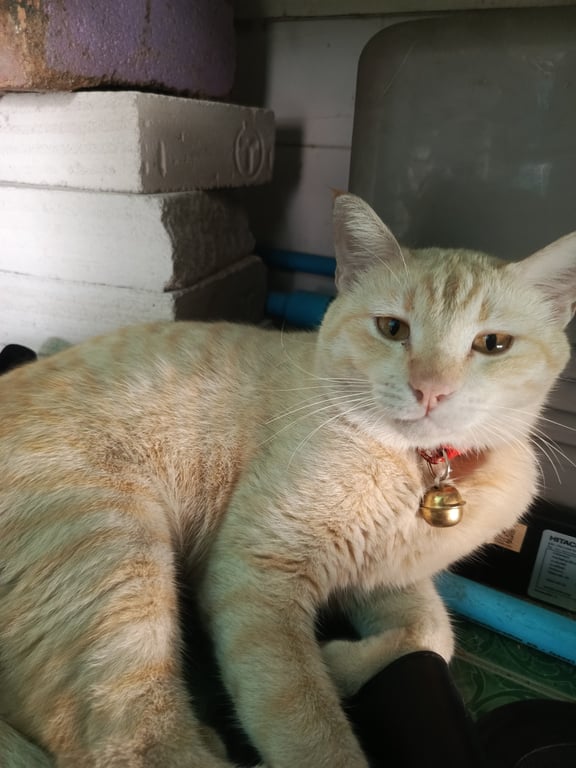 รอยตำหนิ: จมูกสีชมพู ขนสีขาวครีม ปลอกคอสีแดงกระดิ่งใหญ่1 ลูกน้องเป็นแมว นิ่ง เรียบร้อย ขี้อ้อน นอนเก่ง ใครเห็นใครเล่นกับน้องเป็นต้องหลง แต่น้องไม่ชอบให้เซ้าซี้ ถ้าได้หงุดหงิดละก็ แยกเขี้ยวขู่พร้อมกางเล็บเลยทีเดียว