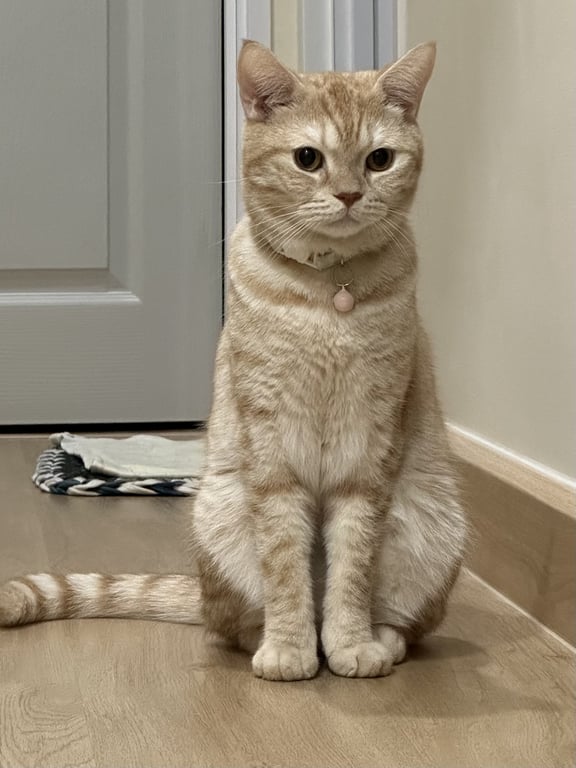 รอยตำหนิ: ขนใต้เท้าหลังสองข้างสีส้มเข้มเป็นโรคชัก ต้องทานยากันชักทุกวัน