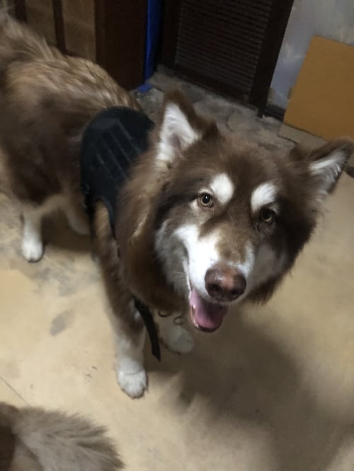 รอยตำหนิ: มีถุงเท้าสีขาวทั้ง4 ขา เวลาวิ่งหางม้วนเข้าหาหลังพันธุ์อลาสกัน มาลามิวท์ เป็นมิตรกับคนมาก เรียบร้อย ขี้ตกใจ เมื่อตกใจจะปล่อยกลิ่นจากต่อมเหม็นกระจาย ตัวสูงถึงสะโพก (หัวถึงสะโพก)