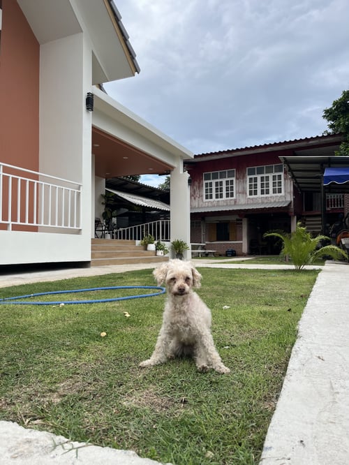 รอยตำหนิ: หางกุด มีรอยสีน้ำตาล ตามผิวหนัง (แก่)ไม่ดุ แก่มาก เดินไม่ค่อยดี ขาหลังไม่ค่อยมีแรง ตาฝ้าฟาง ไม่สู้แสง หูไม่ค่อยได้ยิน พักหลังมักจะนอนเยอะๆเพราะอายุเยอะแล้ว