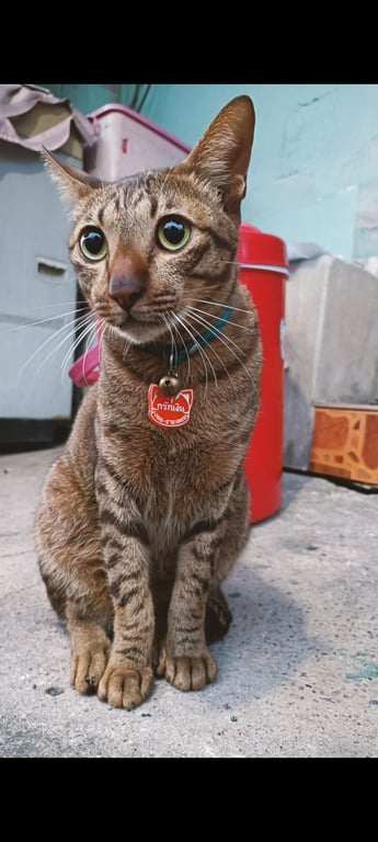 รอยตำหนิ: หางกวัก ลายสลิดออกสีทองแดงเชื่อง สามารถอุ้มได้ ขี้กลัวขี้ตกใจรภเสียงดังๆ